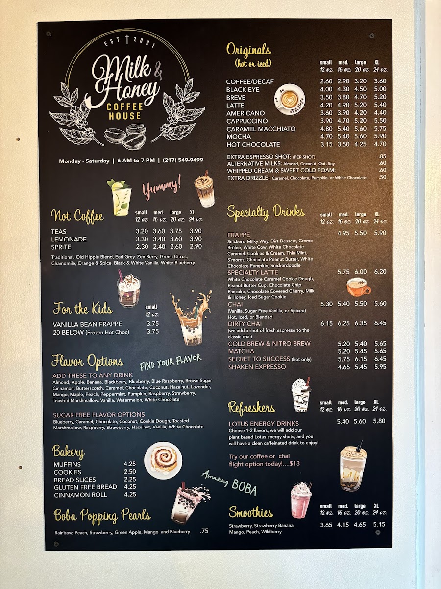 Welcome to Milk and Honey Coffee House, a charming gem located at 621 Charleston Ave in Mattoon, IL. This inviting establishment is celebrated for its creative menu that offers a delightful array of beverages and treats.